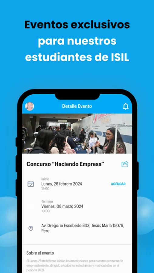 Como alumno de ISIL, en esta aplicación podrás revisar tus notas, horarios de clases, inscribirte a eventos, ver los horarios de movilidades entre campus, información de tus profesores, acceso a un carnet digital, entre otros. Toda la información relevante en la palma de tu mano.