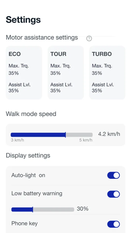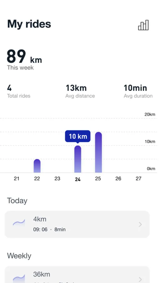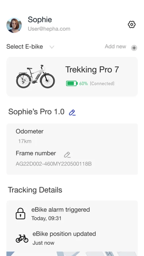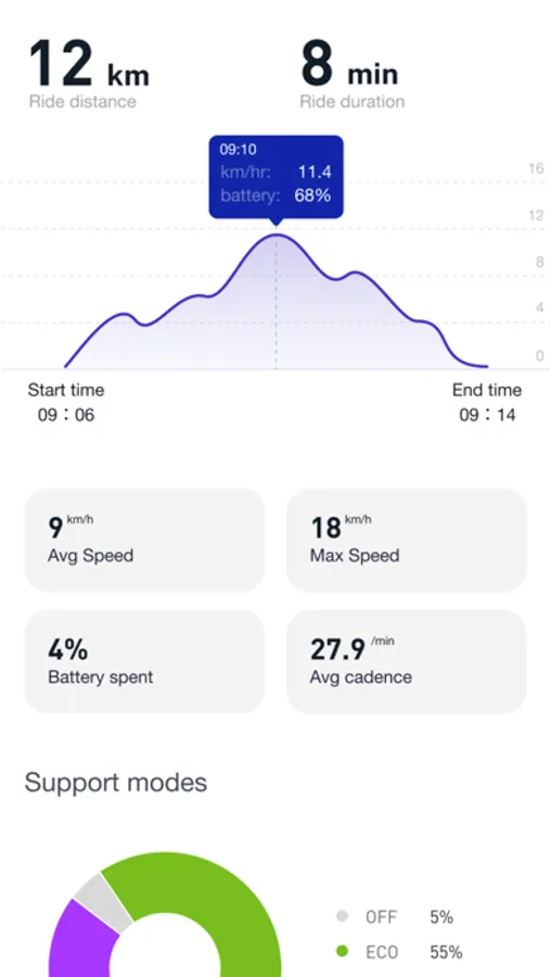 The app is allowed users to sign up his/her account and bound it with a related E-bike via a general Bluetooth connection, within embedded with an E-Bike product profile and record lightly users' riding data.This app will analyze some users' riding history data, and generate a useful report. Meanwhile, the app also allows adapting to different operational scenarios, for instance, changing user profiles and bound with another bike. Hardwaresoftware upgrade if a new version is released, hence 5 main functions are included below,