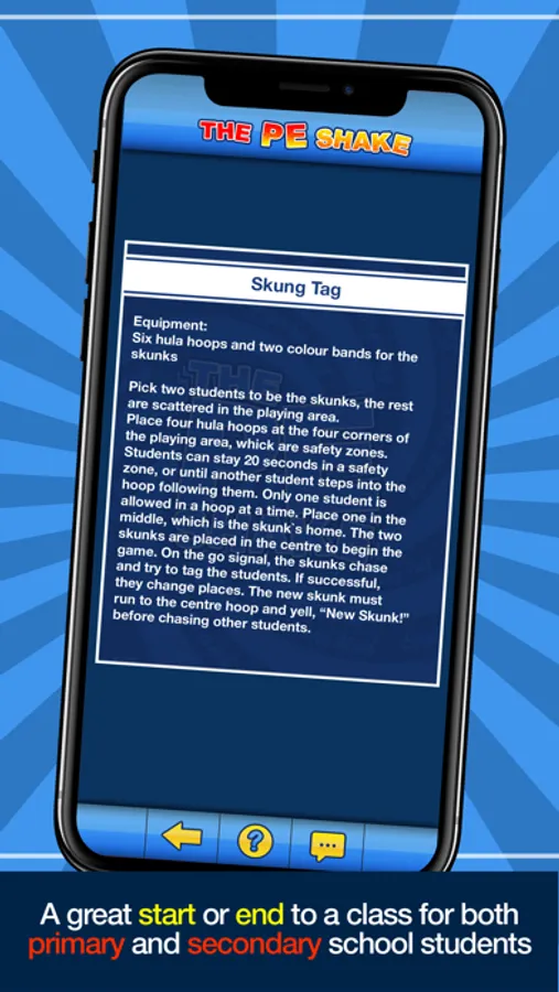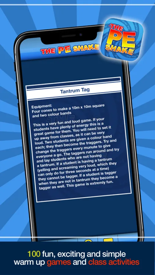 The PE Shake has been designed in a fun to use way for teachers and students. A great way to mix up each lesson with a new warm up game the students will love.
