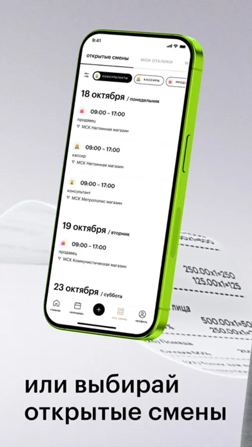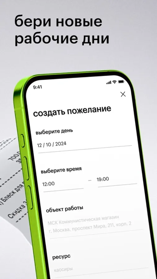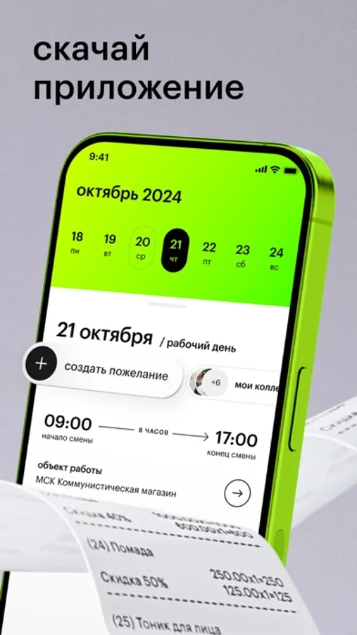 - возможность взять дополнительные смены и оставить пожелания по работе