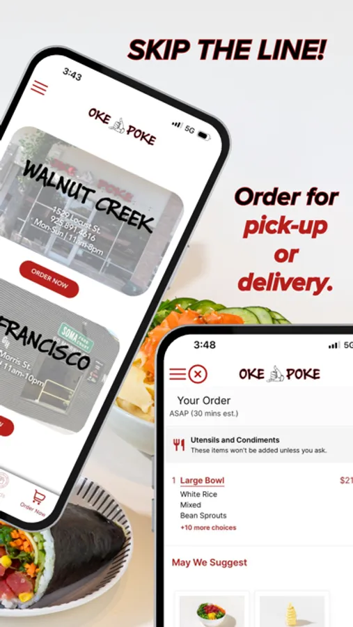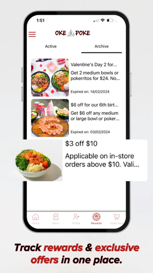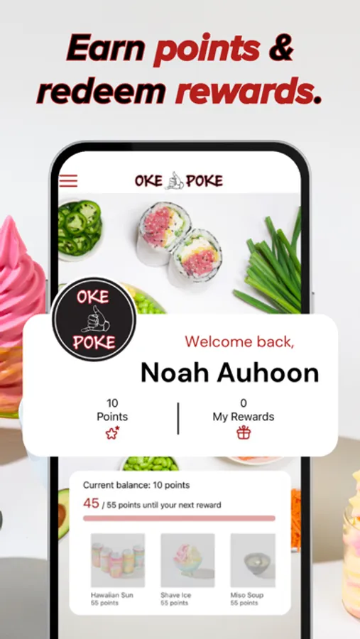Earn rewards and receive exclusive offers on your Oke Poke app that can be easily applied to your Mobile Order.