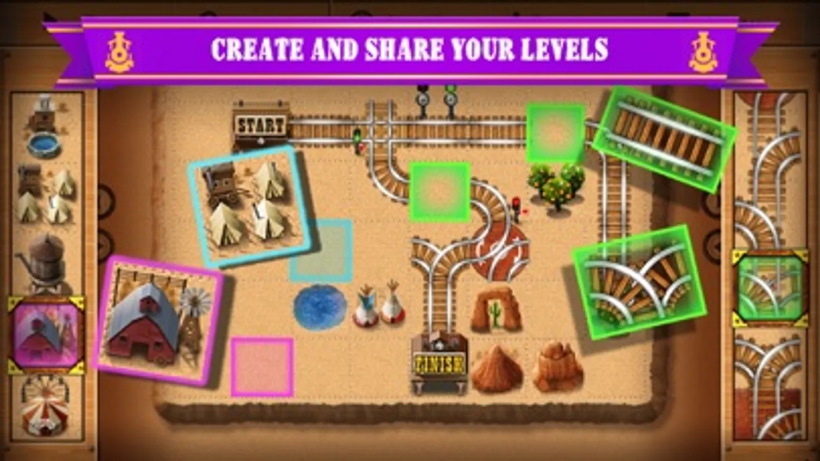 With online levels there is virtually limitless amount of challenging and unique puzzles. Escape PIRATES and GHOSTS on rails, control semaphores and avoid steam and lava. Have a lot of fun!