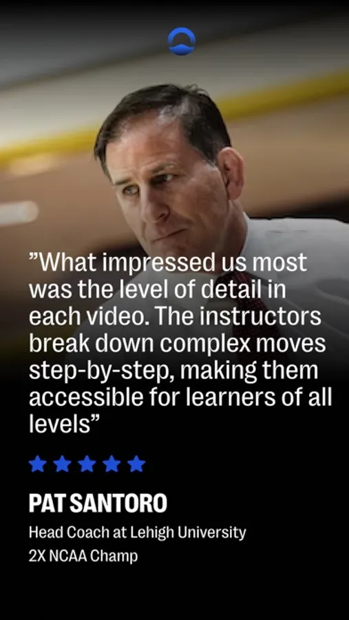“What impressed us most was the level of detail in each video. The instructors break down complex moves step-by-step, making them accessible for learners of all levels. The high-quality production allows viewers to clearly see and understand each technique, which is crucial for proper execution.” — Pat Santoro - Head Coach @ Lehigh University & 2X NCAA CHAMP