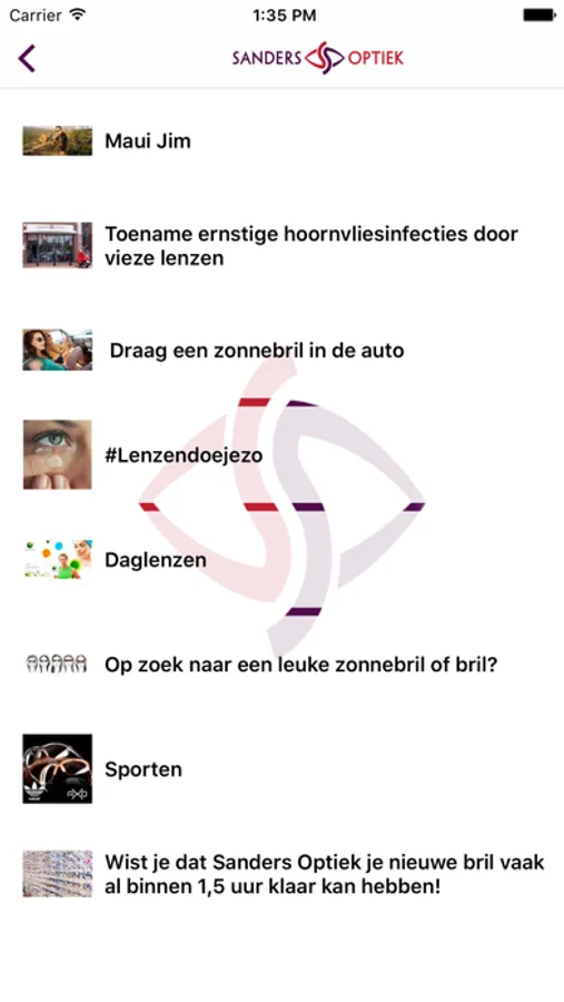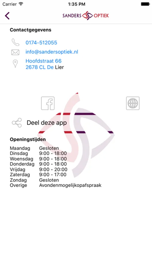 Met de App van Sanders Optiek bent u altijd op de hoogte van het laatste nieuws vanuit de winkel. Tevens heeft u alle informatie over de winkel, zoals openingstijden, adres gegevens, telefoonnummer en de huidige collecties.nAls lens gebruiker heeft u de mogelijkheid om de lenstimer te gebruiken. Hiermee vergeet u nooit meer uw lenzen te vervangen of nieuwe te bestellen.nBent u al klant? Dan kunt u nu direct inloggen vanuit de App om direct een afspraak te maken of nieuwe lenzen te bestellen.