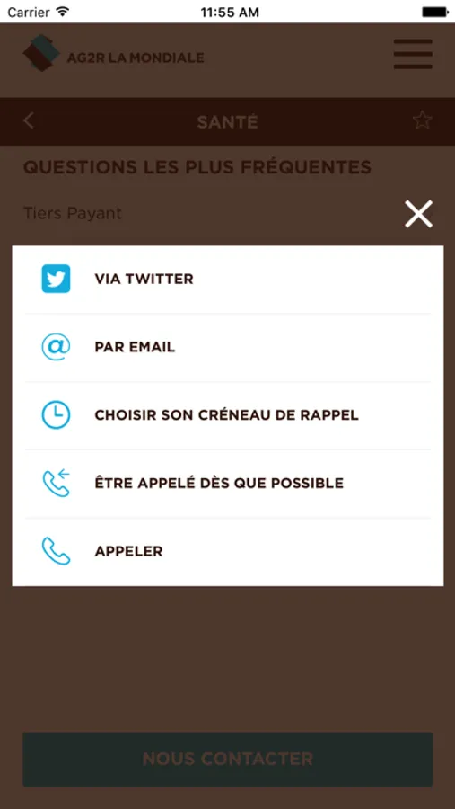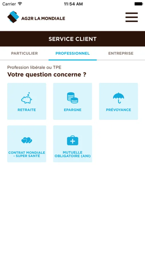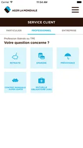 L'application « Service Client » d’AG2R LA MONDIALE propose un service de relation client mobile, avec des réponses aux questions les plus fréquentes (FAQ), les numéros de téléphone des différents services et des indications sur la disponibilité des centres de relation client.