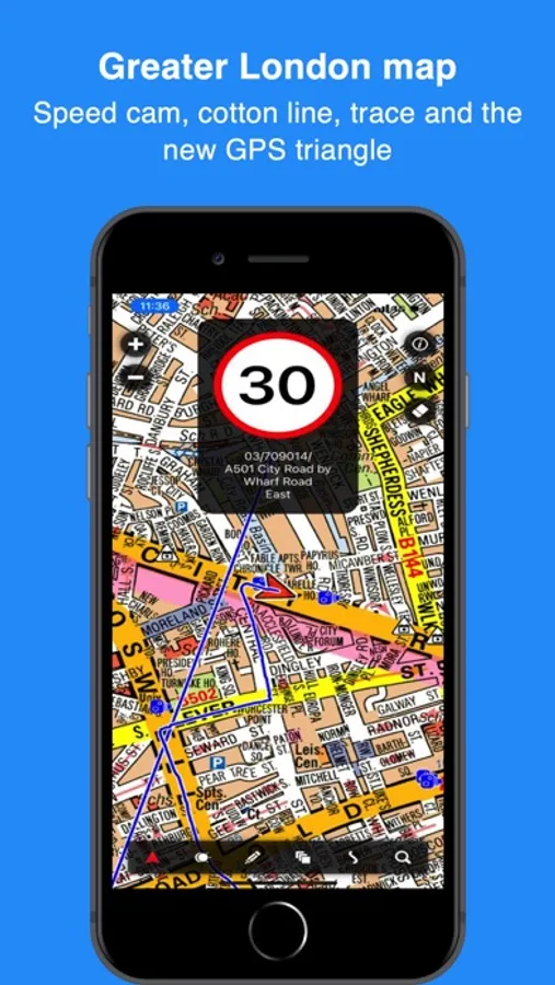 Greater and Central London maps have been customised by colouring more main roads around the City of London to assist with route planning, exclusive to our software. Our app contains the latest available maps, always displayed 'north up'; your current position is displayed as you move on screen while you drive. Switching between the five A-Z maps is a one-touch operation.