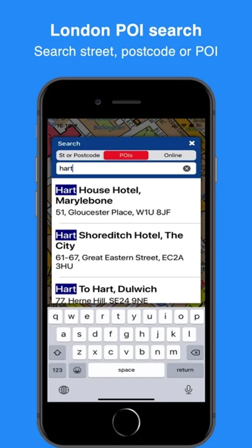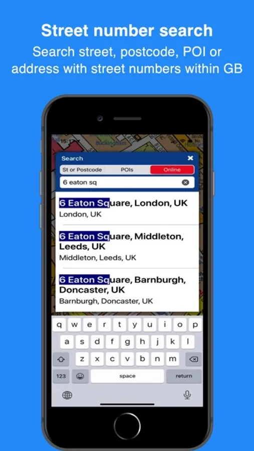 The A-Z map is linked to the iOS navigation map. Simply select a destination on the A-Z map, tap on the 'N' navigation button, and your route will then be calculated on the iOS navigation map, ready to navigate.