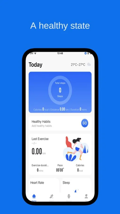 ● Set up drinking reminder, sedentary reminder, daily goals (sleep duration, exercise duration, exercise distance, steps, calories burned) and goal achievement reminder