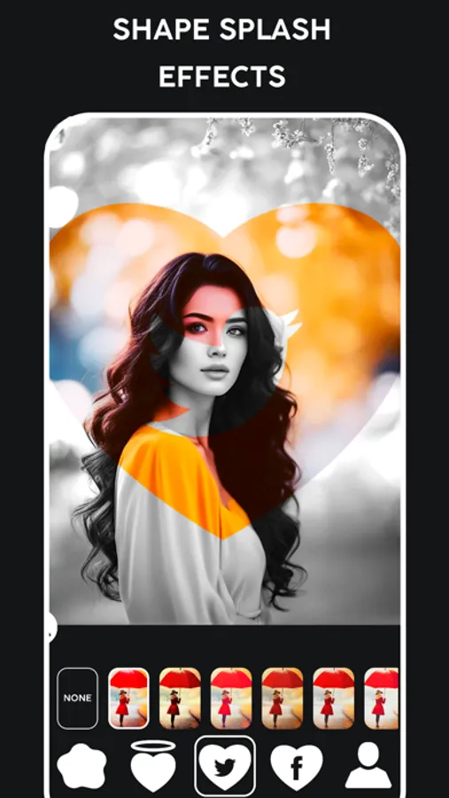 It has unique shape splash feature. Using shape splash feature highlight color with desired shape and get stunning color pop effect.