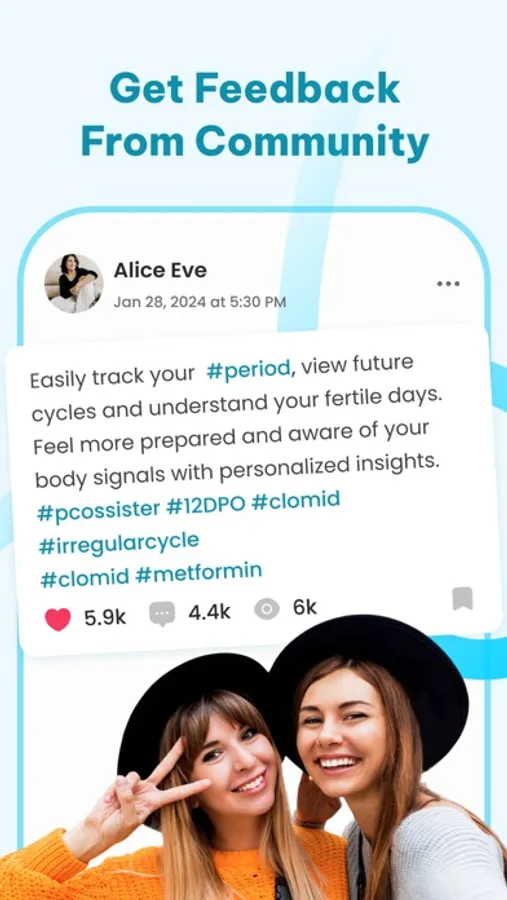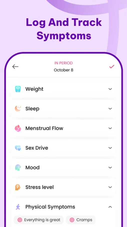 AI-BASED PREDICTIONS: Log your symptoms and activities to get the most precise AI-based overview of your body's patterns. Our advanced algorithms learn from your inputs to provide personalized predictions for your menstrual cycle and ovulation.