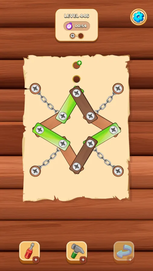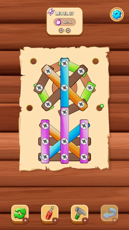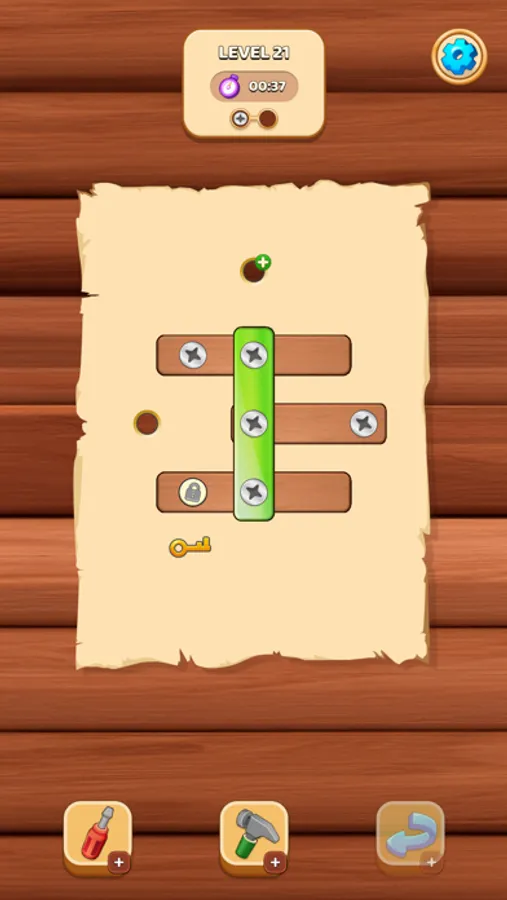 - Various tools: Get stuck between the wood nuts unscrew conundrums? Free tools are there to help you! Use the screwdriver to unscrew more nuts, or just use the hammer to break any obstacle preventing you from solving the wood unscrew puzzle.