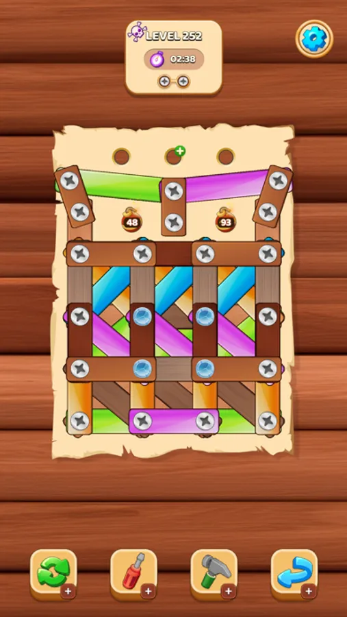 Jump into Wood Nuts & Bolts Unscrew Puzzle, a challenging wood puzzle game designed to test your brain. Tap to screw the wood nuts and let the journey begin!