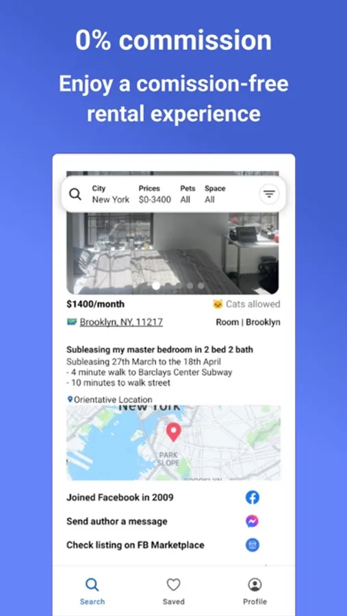 A commission-free rental experience with filter search by amenities, price and neighborhood