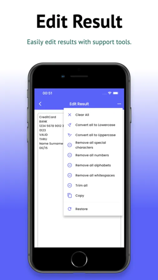 - Edit & Organize: Edit extracted text directly in the app and organize your scans in the history tab.