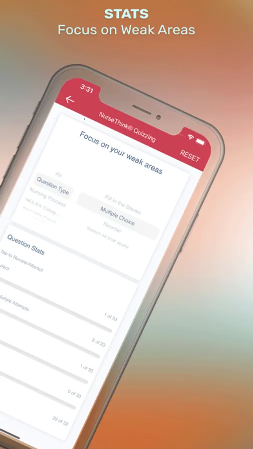 - Practice question categories include the level of cognitive ability, client needs, integrated process, clinical judgment/cognitive skill, content area, priority concepts, alternate item formats, and strategy.
