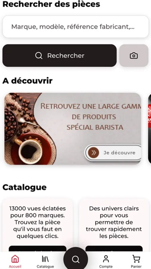 Avec notre application, vous pouvez accéder à notre vaste catalogue de pièces détachées depuis votre téléphone mobile de manière plus intuitive et pratique. Utilisez votre compte existant pour vous connecter, que ce soit sur notre site web ou l'application, et profitez des fonctionnalités suivantes :