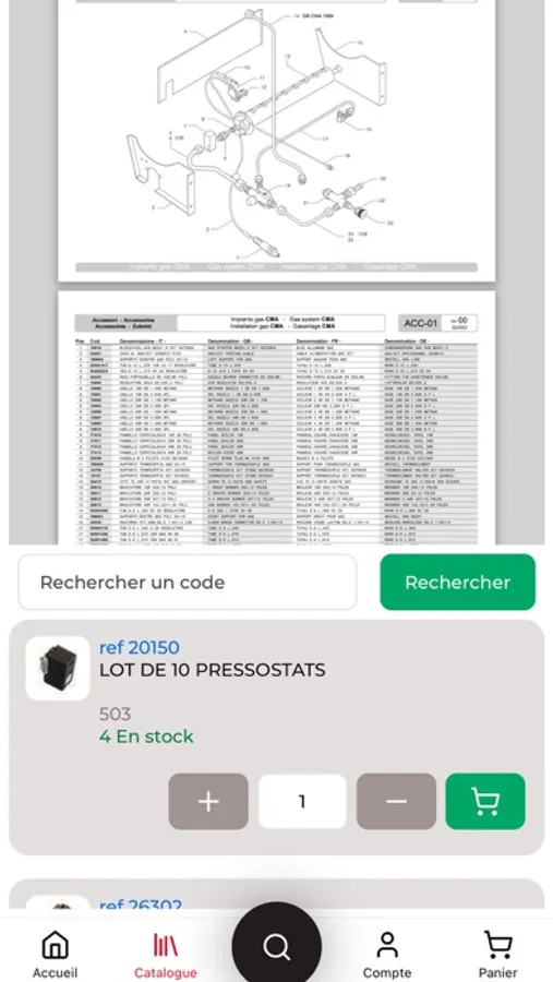 Fonctionnalités de recherche avancées : Trouvez rapidement les pièces dont vous avez besoin grâce à nos fonctions de recherche. Scannez un code-barres directement depuis votre téléphone ou utilisez notre recherche classique par texte.