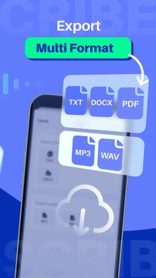 Export transcripts to TXT, PDF, DOCX. Share audio and text via link, email, or your favorite apps.
