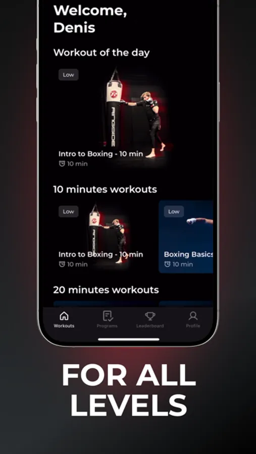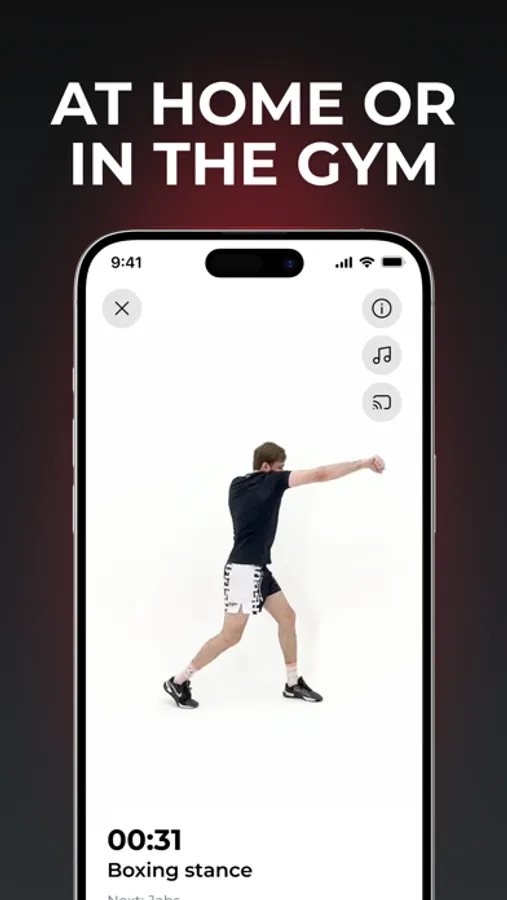 The app is designed for fighters of all skill levels across various combat sports who aim to enhance their skills and burn significant calories. Workouts are categorized into classic boxing, shadowboxing, strengh and conditioning, and are also suitable for practitioners of Mixed Martial Arts (MMA), Muay Thai, Jiu-Jitsu, Karate, Taekwondo, and other martial arts.