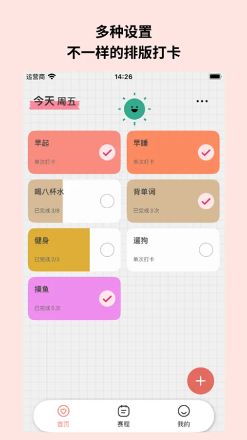 无广告,秒启动,无需注册,免费使用。简约小清新强大的习惯养成工具,保持专注,拒绝低头党,培养良好习惯。