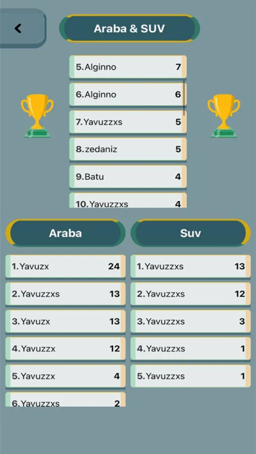 Gelen fotoğraftaki araba modellerini bil ve skor kas, en zor modda oyna ve liderlik tablosunda kendine gör. Dilersen kolay veya orta modlarda da oynayabilirsin. Arazi, SUV & Pickup modu veya normal modu seçerek dilediğin araçları bilmeye çalışabilirsin. +1000'i aşkın soru ile sınırlarını zorla. Araba modelleri hakkında ilgin varsa öğrenmek istiyorsan veya bilgini test etmek istiyorsan tam olarak bu oyunla kendini geliştirebilir, test edebilirsin.