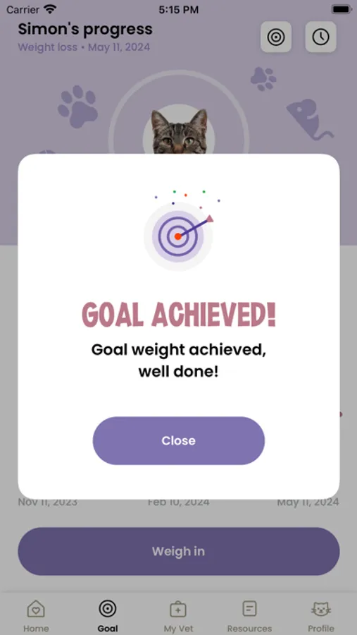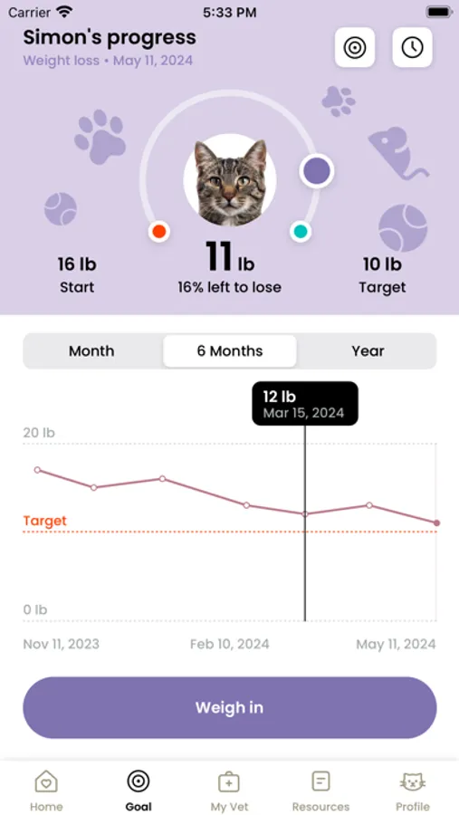Fat cats are cute, but they aren’t healthy. Preserve precious years with your kitty by helping them shed the extra pounds and get fe-line great! Simply download the app to get started. Enter your cat’s name, starting weight, food budget, and health goals based on your veterinarian’s recommendations and we’ll do the rest! With built-in notifications and reminders customized specifically for your cat’s needs, our app takes the guesswork out of mealtime and playtime for exercise. Keep your preferred veterinarian up-to-date with detailed monthly reports as you work together to improve your cat’s health.
