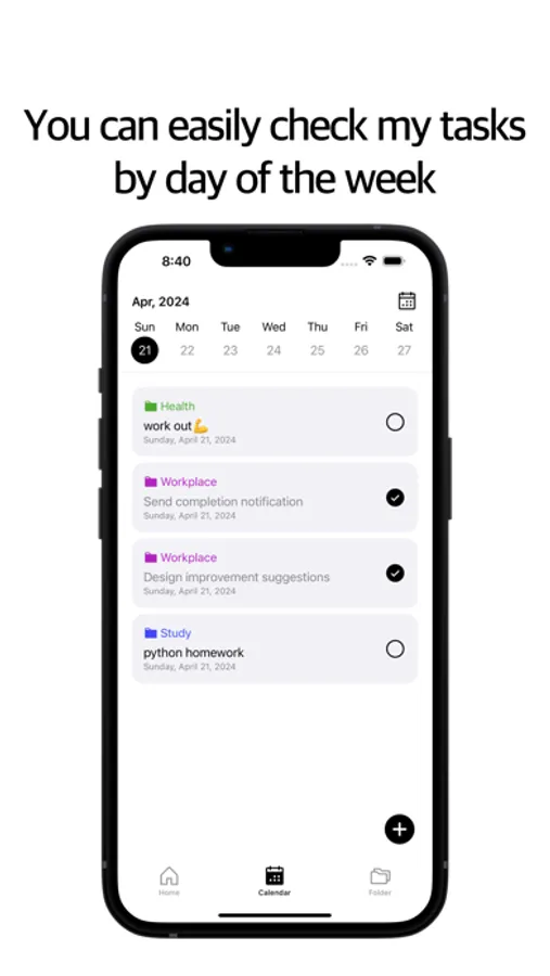 - It allows you to easily check your tasks by day of the week.