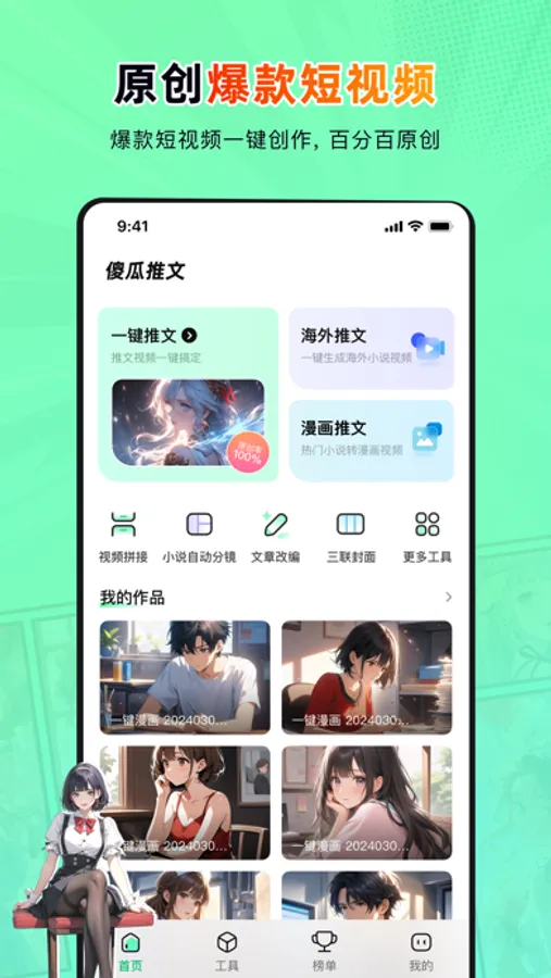 傻瓜推文 App 是一款专注于内容创作与推广的移动应用,为用户提供便捷的推文制作、漫画推文转换、爆款视频二创等功能,旨在帮助用户快速打造个性化内容并扩大影响力。