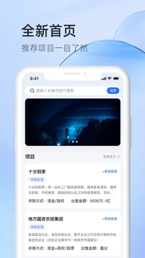 91并购,作为一款专为中国投资者量身打造的互联网平台,致力于追踪并深度解析全球范围内重大并购、合并、股权转让事件,引领您精准把握资本市场的脉搏。这款应用程序以其全面的信息覆盖、便捷的操作体验,成为您洞察投资机遇、洞悉行业趋势、优化决策过程的得力助手。海量项目库。汇聚各行各业的项目,涵盖初创企业,成长型企业乃至成熟上市公司,满足不同投资阶段和偏好。凭借其权威的信息来源、强大的数据分析能力与卓越的用户体验,为中国的投资者构建起一座连接全球并购市场的桥梁。