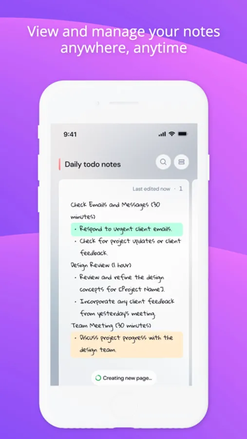 • Real-Time Sync and Accessibility: Your notes are always where you need them. Thanks to cloud integration, you can access and manage your notes from any device, ensuring your information is always up-to-date and at your fingertips.