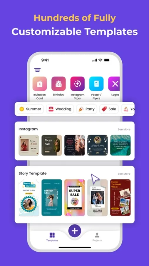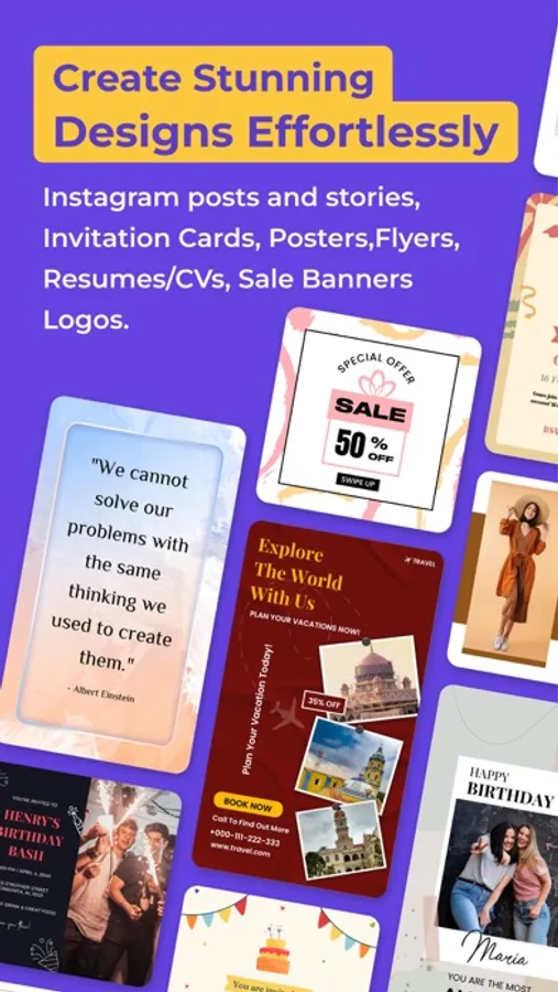 Versatile Templates: Choose from a variety of templates tailored for Instagram, sale banners, invitations, resumes/CVs, and more.