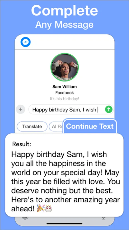AI Message Completion: Allow AI to continue your texts based on the context you provide, making writing faster and easier.