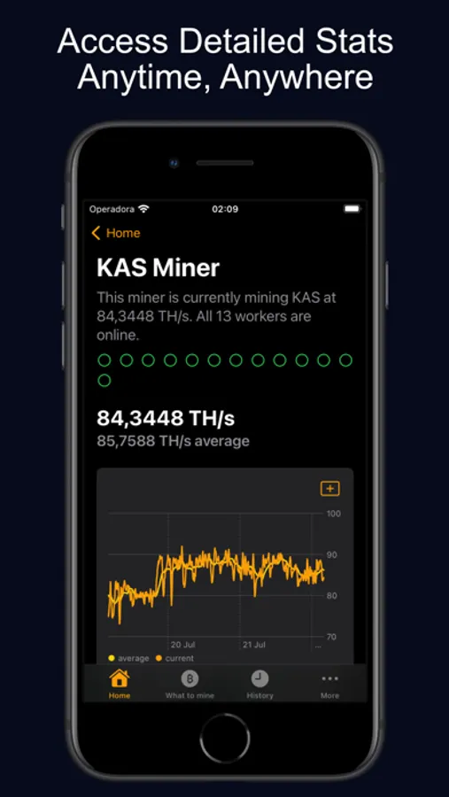 See miner stats, crypto news, portfolio value, “What to Mine” suggestions, and favorite coin prices—directly on your Home or Lock Screen.