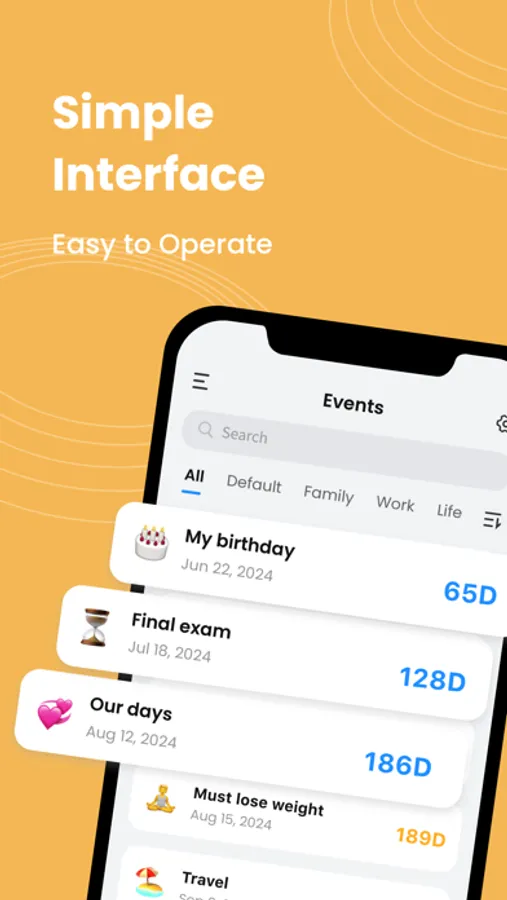 - Customize the countdown app free icon, sort day countdowns effortlessly, and stay organized—all in one place!