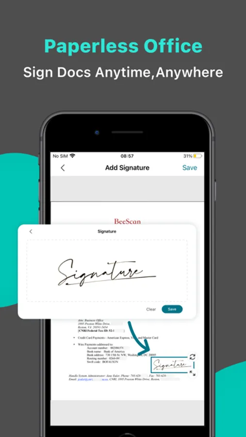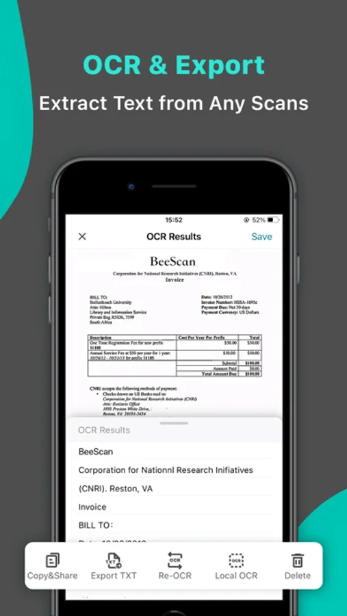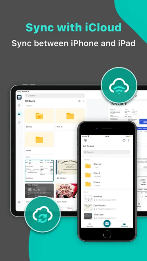 It is also a camera scanner with concise, efficient user interface whose main tone is black & white with teal & chrome yellow embellished throughout the app.