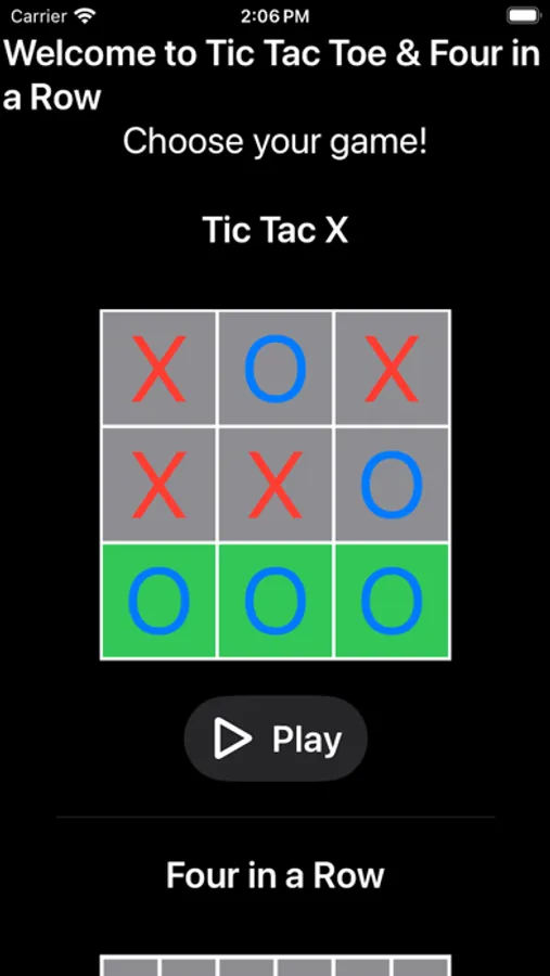 Play the two classic games Tic Tac Toe (XO) and Four in a Row in a single app on your phone, tablet or watch.