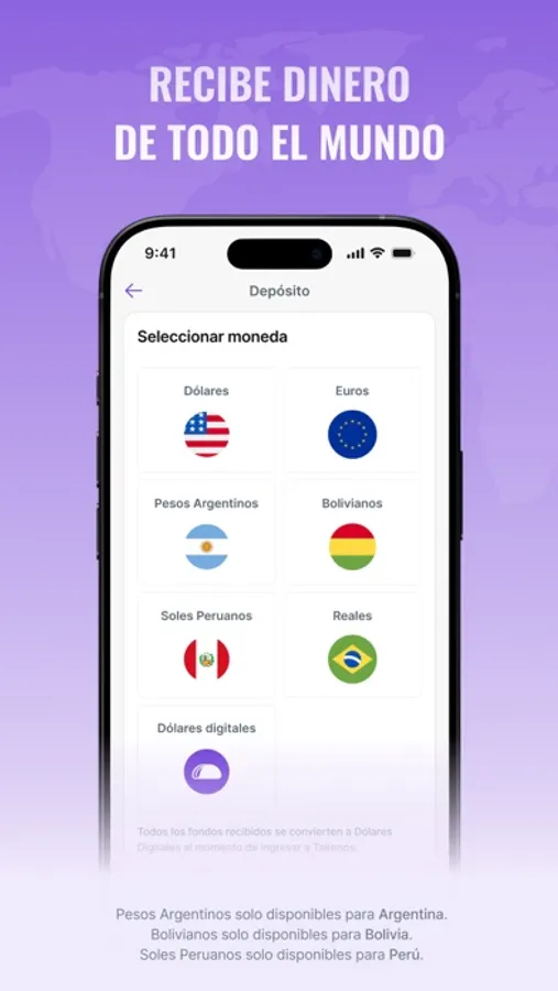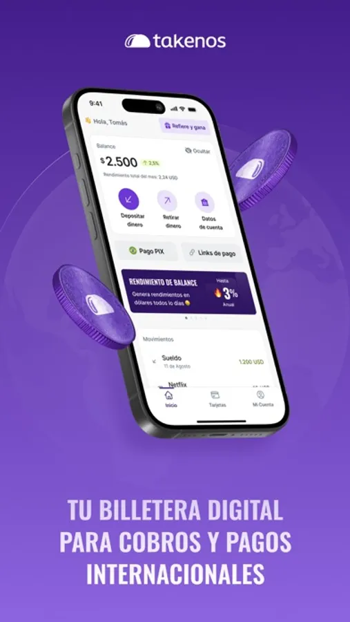 Usa Takenos para poder recibir tus ingresos en todo el mundo. Vas a poder tener tu cuenta en USD, EUR y otras monedas para que tus clientes o empleadores te envíen por tus trabajos en todo el mundo. Una vez que recibas los fondos, vas a poder usar tu saldo de la manera que mas te convenga en moneda local, USD digital o con tu tarjeta internacional o local.