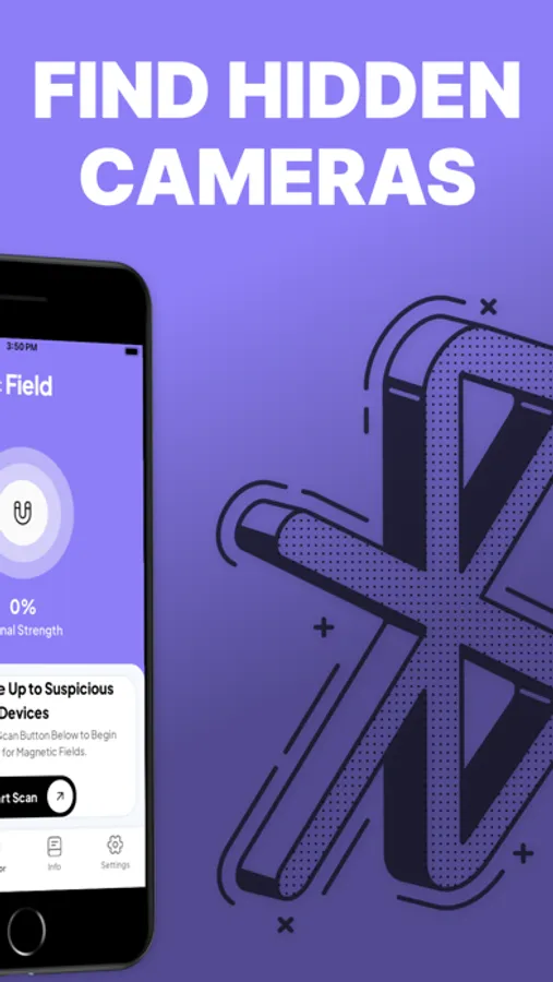 Use SweepScan's Magnetic Field Sensor to detect hidden cameras. Hold your device to different items around your room to highlight any unusual magnetic fields indicating hidden cameras.