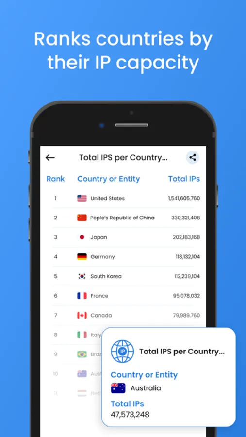 'ASN info' - displays quick statistics about any ASN around the globe, with detailed information about the currently held public IP address space, estimated service area with map visualization and adjacent connections to other ISPs.