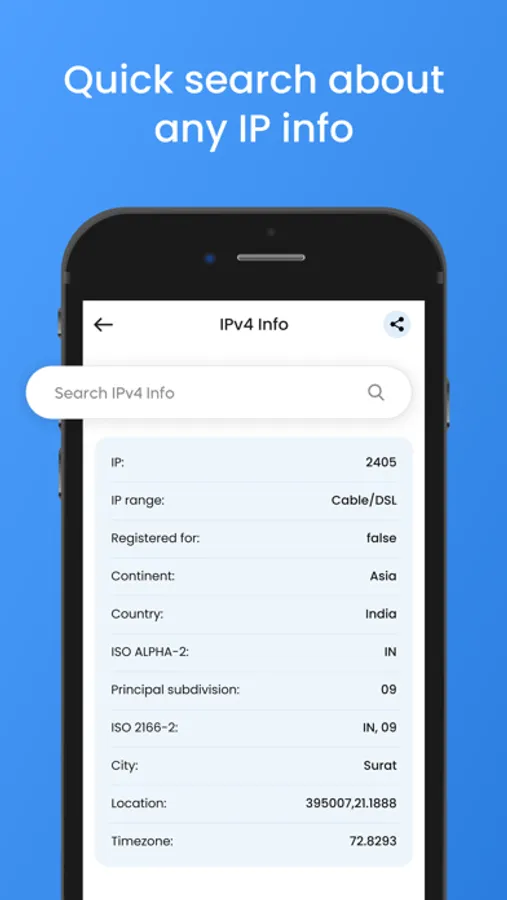 'IPv4 info' - a fast way to obtain specific information about any public IP in the World, including estimated location, service area, ISP name, autonomous system number (ASN), announcements and more.