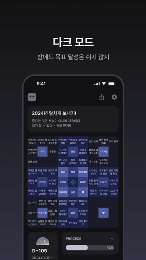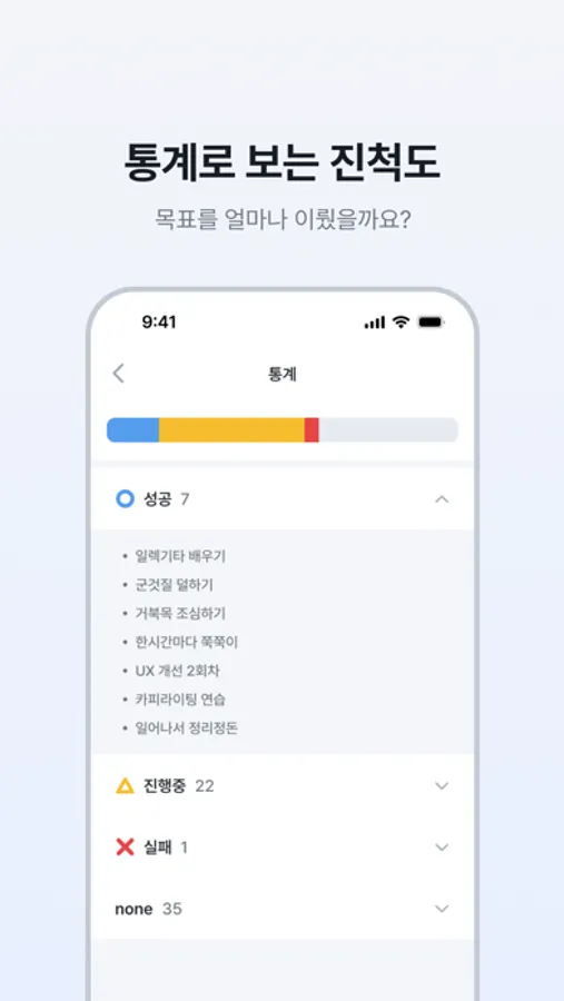 - 통계를 통해 세부 목표의 진행 상황을 한눈에 확인할 수 있어요