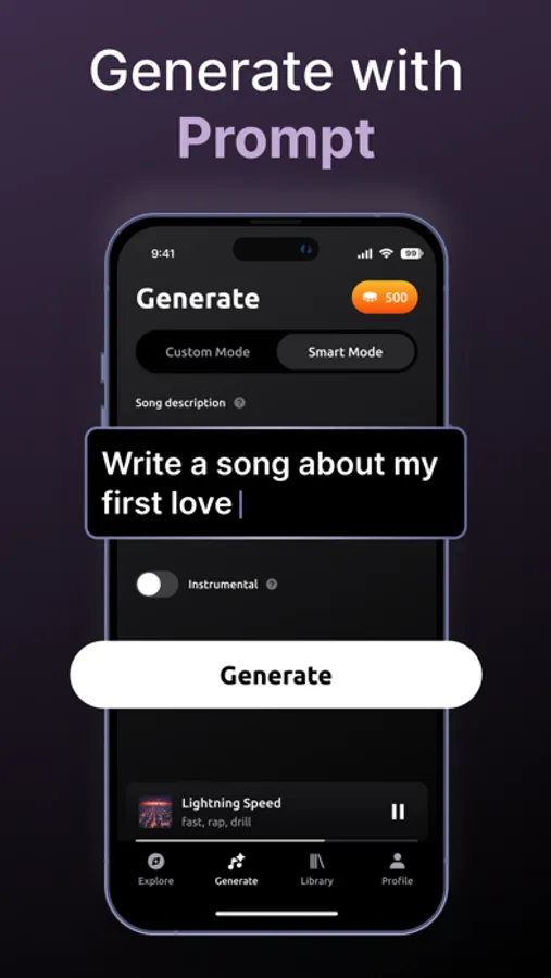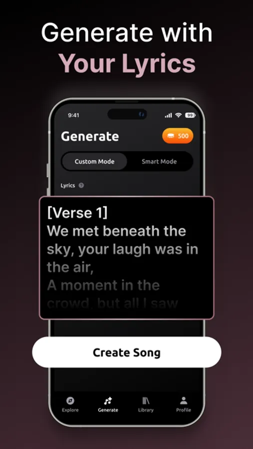 Struggling with lyrics? No problem! Write your own heartfelt verses or let Zona suggest lyrics that match your mood and genre. Our AI-powered songwriting assistant makes lyric creation effortless.