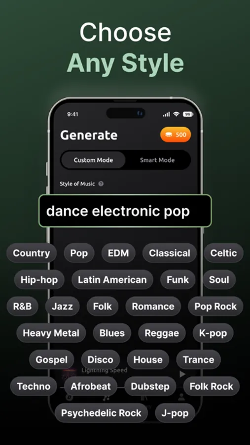 Mix and match genres effortlessly. Whether it’s pop, rock, electronic, hip-hop, classical, or something unique, Zona lets you experiment and create your signature sound.
