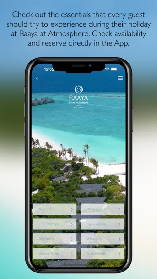 Explore RAAYA by Atmosphere Maldives and its stunning facilities, plan your visit and perfect your stay on-the-go by booking activities from your device before arriving and while at the resort. Use this app to pre-plan and ensure you don’t miss out on any of the incredible experiences on offer at RAAYA by Atmosphere Maldives.
