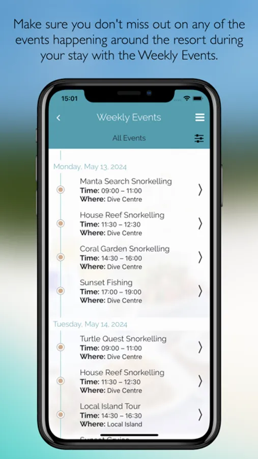 - Book dining experiences, spa treatments, excursions, and activities, such as scuba diving, snorkelling and water sports