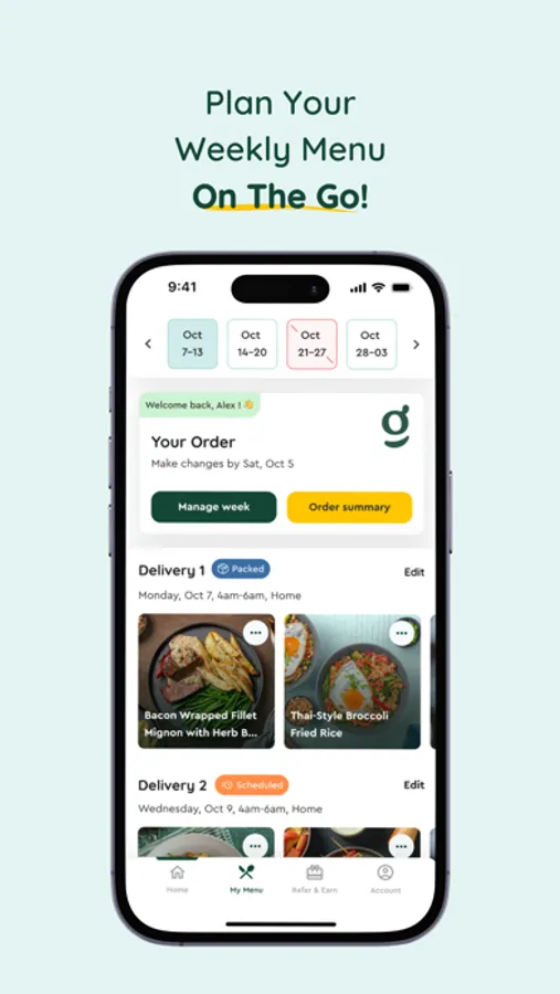 • Full calorie and macro info per meal