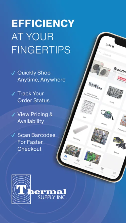 Introducing the Thermal Supply, Inc. app, made to better serve our customers. Dive into your account insights, breeze through shopping, check pricing and inventory levels effortlessly, and explore all your favorite brands-all right at your fingertips.