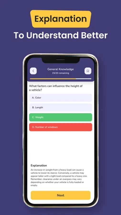 - Detailed explanations for wrong answers.