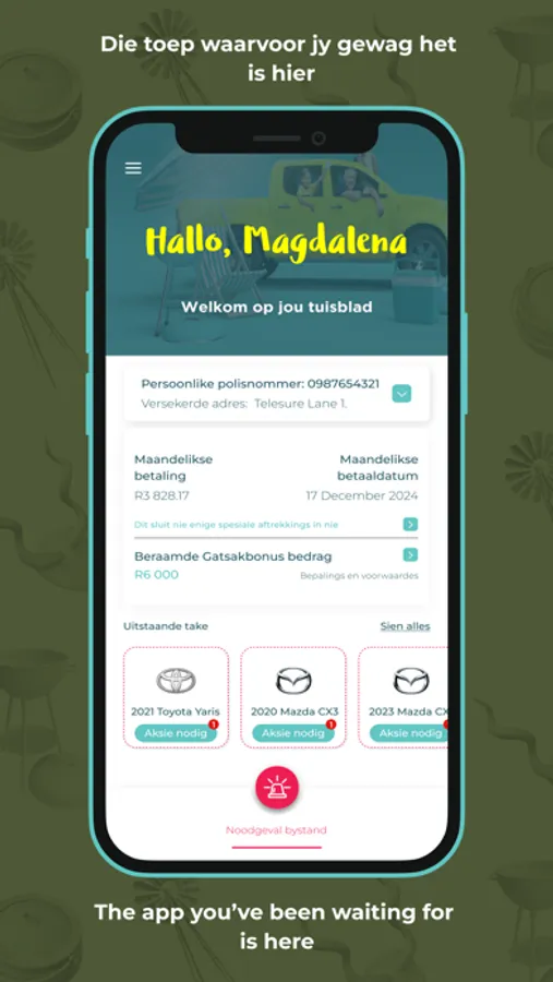 Ons bystand nommers is reeds op die toep gelaai sodat jy vining en maklik met die druk van 'n knoppie by ons kan uitkom wanneer daar ‘n noodgeval is. Jy sal ook maklik met die toep jou kar inspeksie kan voltooi.