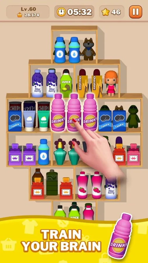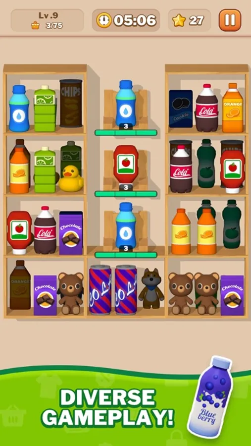 - Sort all goods before time expires to earn rewards and unlock new sorting games
